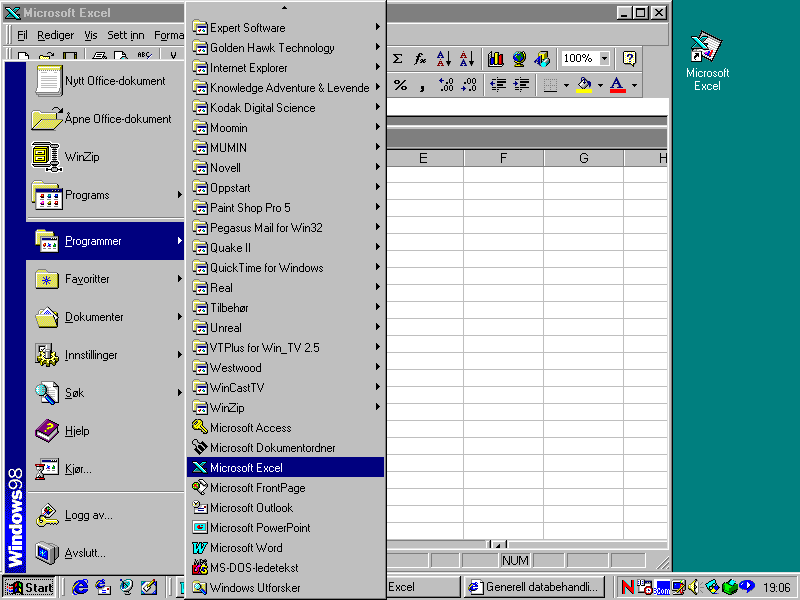 Du er nå inne i EXCEL og får opp skjermbilde for EXCEL 97.